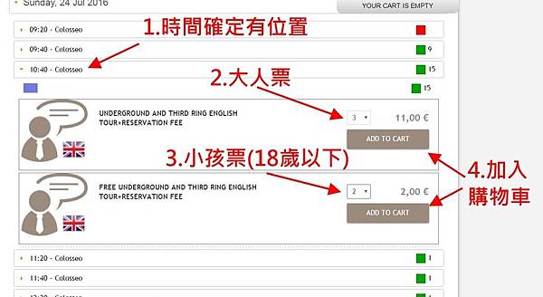STEP 4 大人的是11歐元,18歲以下只要2歐預約費即可